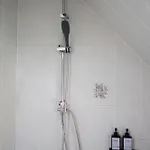 Man findet hier 1 Badezimmer mit einer Badewanne und einer Dusche. Ein Haartrockner und Badelaken sind ebenfalls vorhanden.
